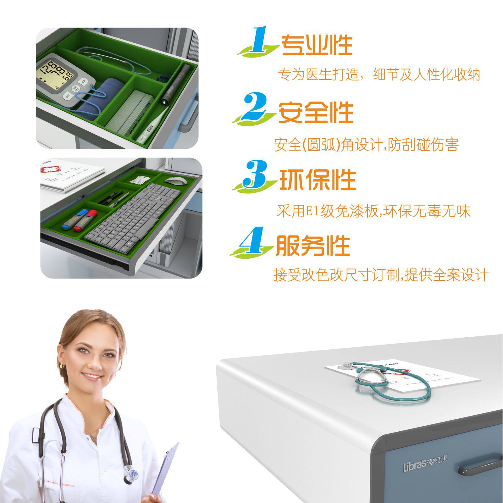 YB03-white light blue -1400X600YB04 - white light blue -1200X600yb08 doctor look at the chair yb09 patient stool logo lettering