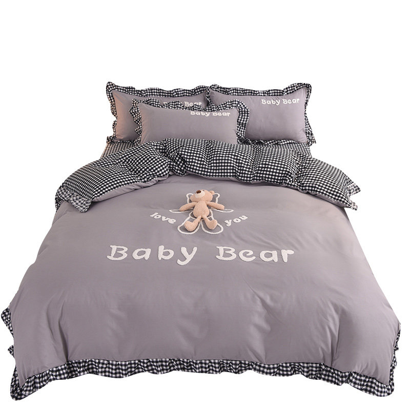 Xiaohongshu recommends a four-piece cotton princess style double quilt cover sheet girl bed skirt Korean version of the cotton bedspread