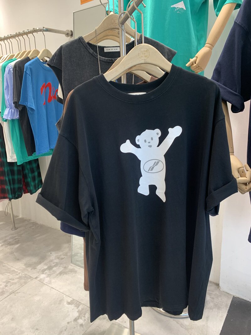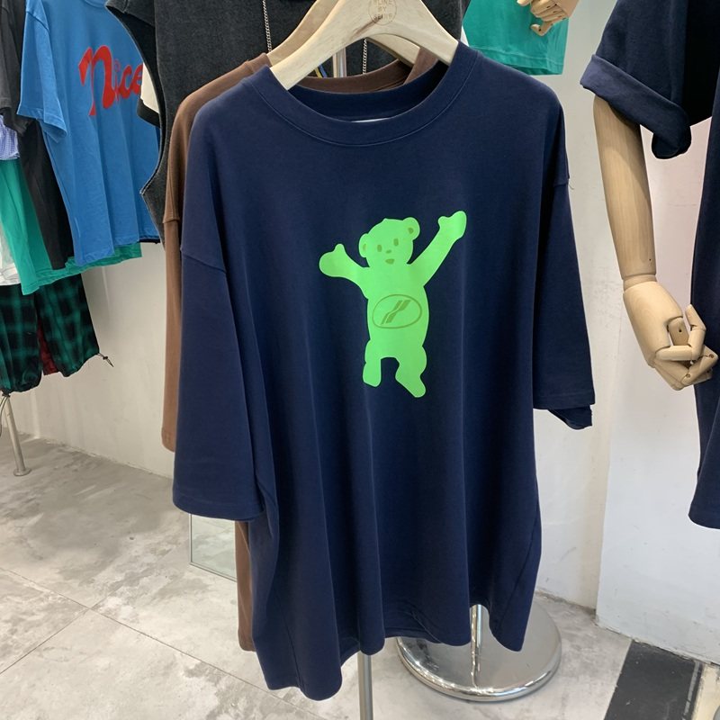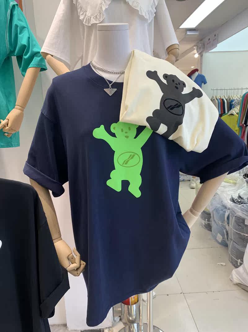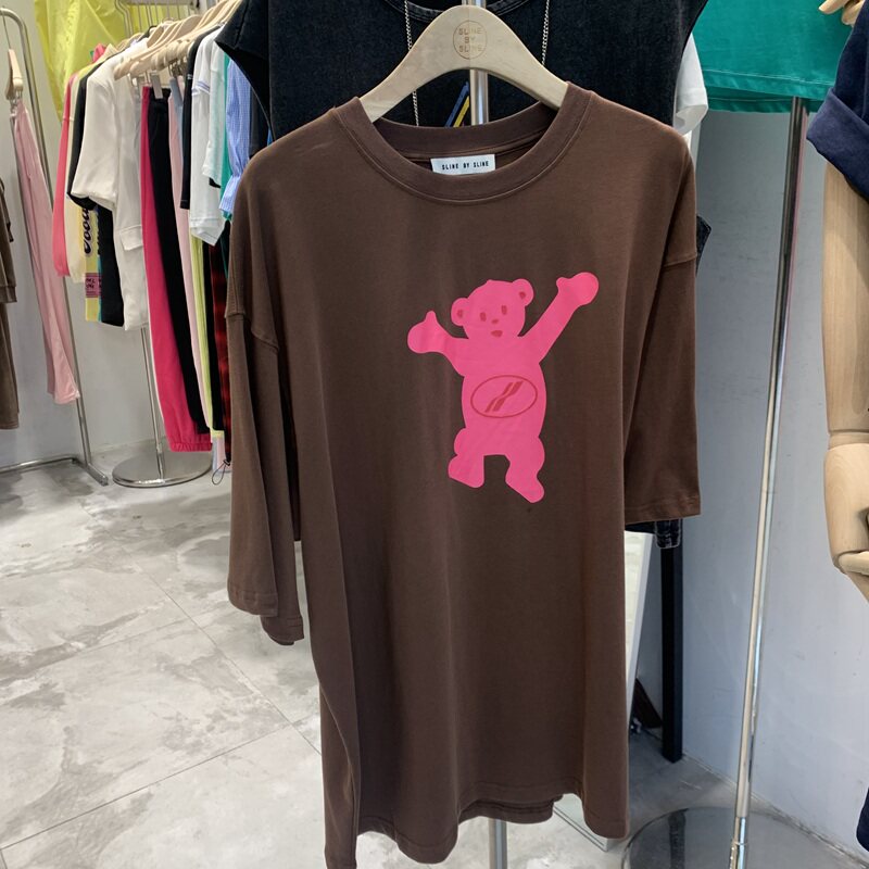 sline Korean version 2022 summer new casual all-match creative bear print short-sleeved loose top T-shirt women's tide