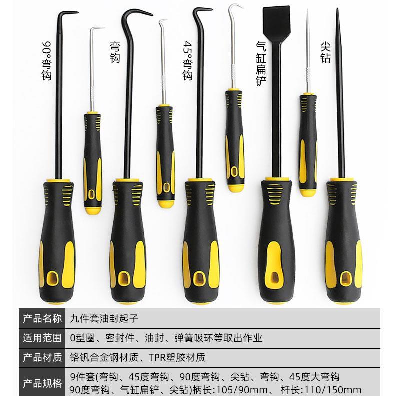 6 pieces oil seal driver 4 pieces oil seal opener yellow 9 pieces oil seal opener black 9 pieces oil seal opener 4 pieces oil seal opener