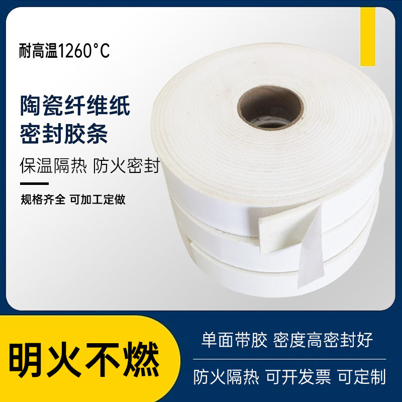 High temperature resistant ceramic fiber fireproof sealing strip fire smoke exhaust flame retardant insulation air duct self-adhesive strip A class non-combustible