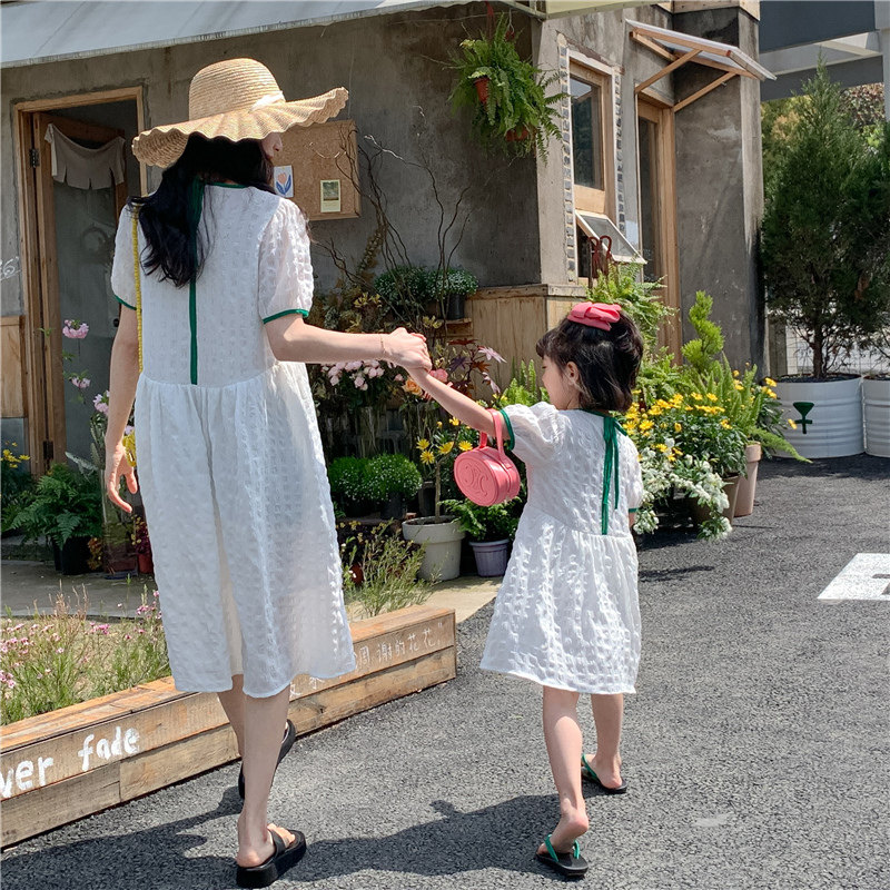 Mother-child dress Yangtze Han Edition relaxed summer short sleeve girl dress high-end fried street mother and woman dress