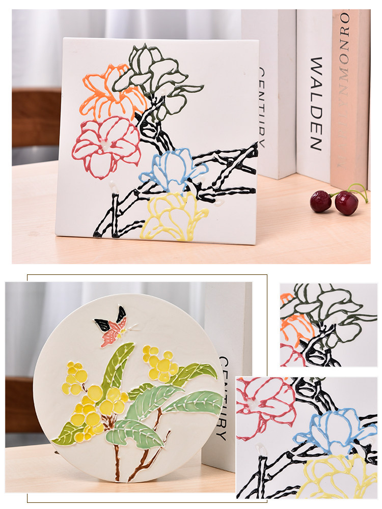 Ceramic art underglaze color 3D three-dimensional glaze biscuit vertical line hook edge filigree decoration heap carving creative color painting convex color