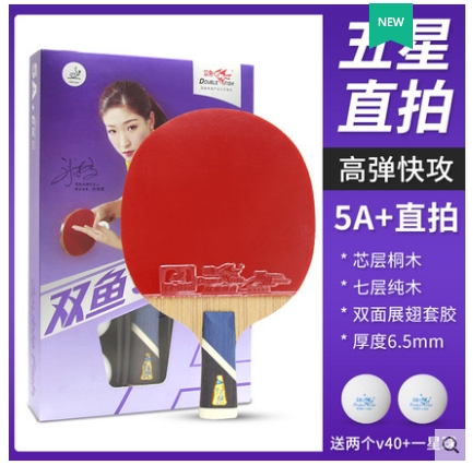Double fish 5 star table tennis racket 5AC crossbeat long handle 5AE straight pat short handle racket double reverse glue finished film
