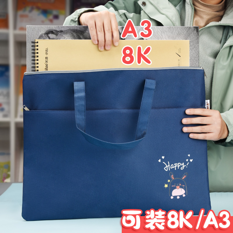 Enlarge A3 art bag 8 open horizontal section student drawing art bag 8K waterproof large handbag painting work sketch paper storage bag large capacity thickening hand carry information bag zipper tutorial bag