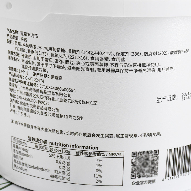High master blueberry fruit meat filling 3kg gonorrhea sandwich decorative fruit filling cake West point whole blueberry jam