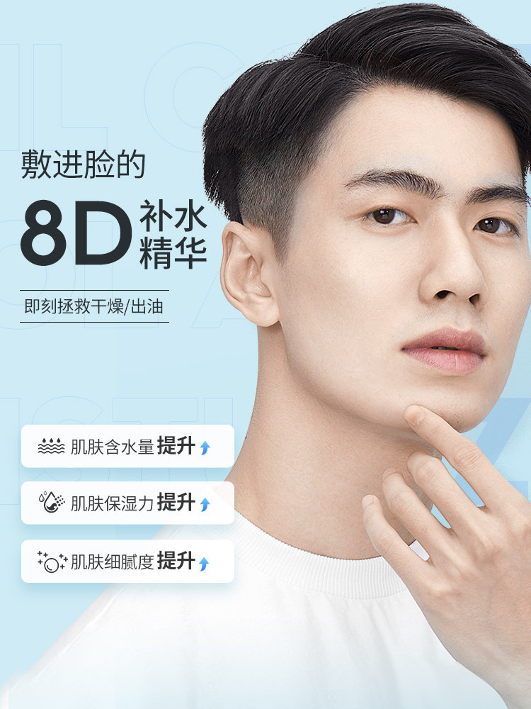 Left color right color men's 8D hyaluronic acid mask moisturizing moisturizing oil control shrink pores dilute acne marks for boys