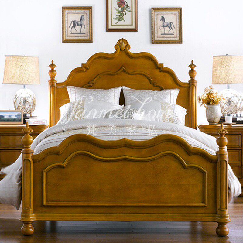 American solid wood bed French style retro children princess bed bedroom furniture 1 2 m male girl single double bed-Taobao