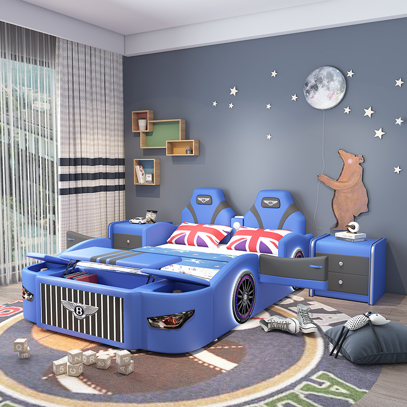 Children's bed boy car bed 1 5 single bed 1 2 multifunctional cartoon car shape with guardrail solid wood leather bed