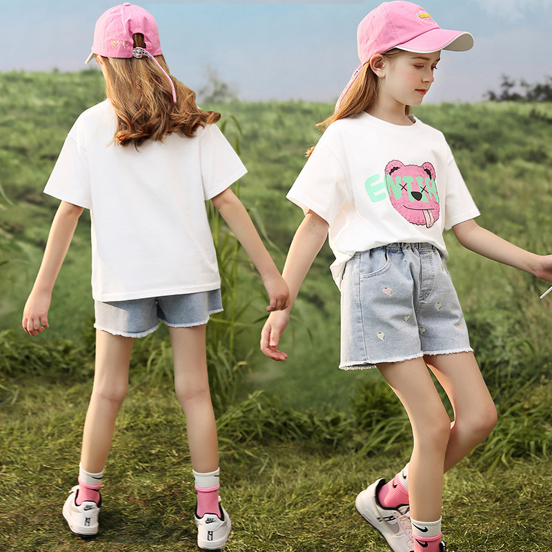Girl's Summer Suit 2022 New Trendy Foreign Pie Summer Clothing Online Red Girl Children Suit Shorts Two Pieces