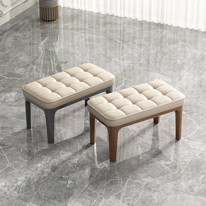 Long leather stool simple light luxury shoe changing stool creative solid wood long stool footstool leather pier living room small sofa stool