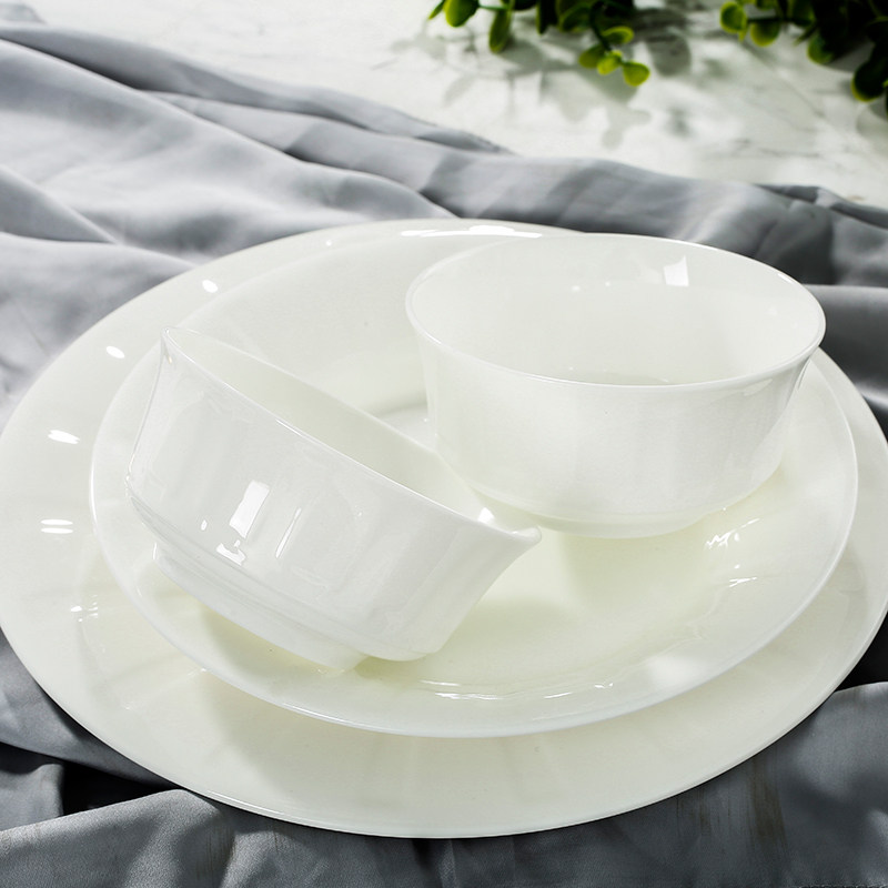 Pure white bone china bowls and dishes home simple bowls and plates rice bowls dish soup dish underglaze color loose parts matching