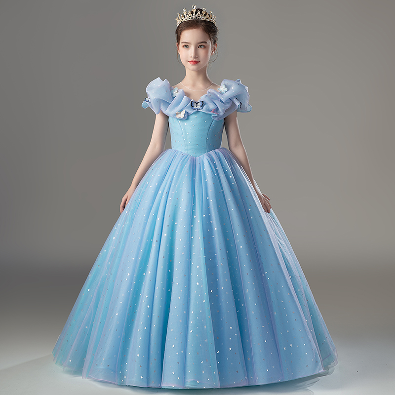 Children's Gown High-end Girl Princess Dress Birthday Grey Girl Fluffy Skirt Six Small Host Piano Show-Taobao