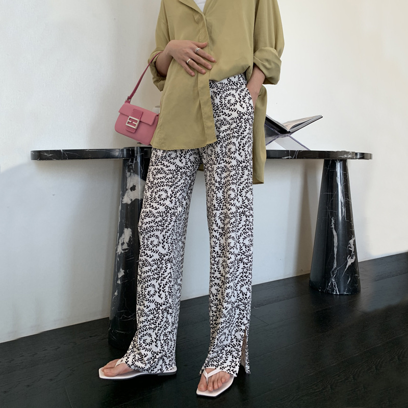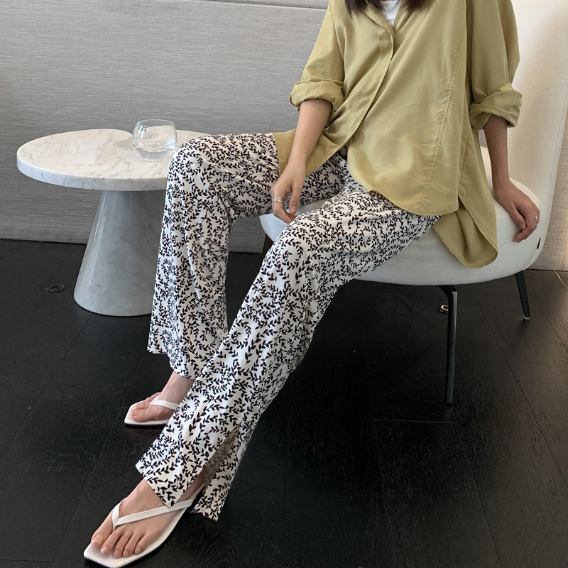 Pregnant Woman Ice Silk Broadlegged Pants Towpants 2022 Summer Leaves Tide Moms Concierously Loose Open Fork Straightaway Pants Thin