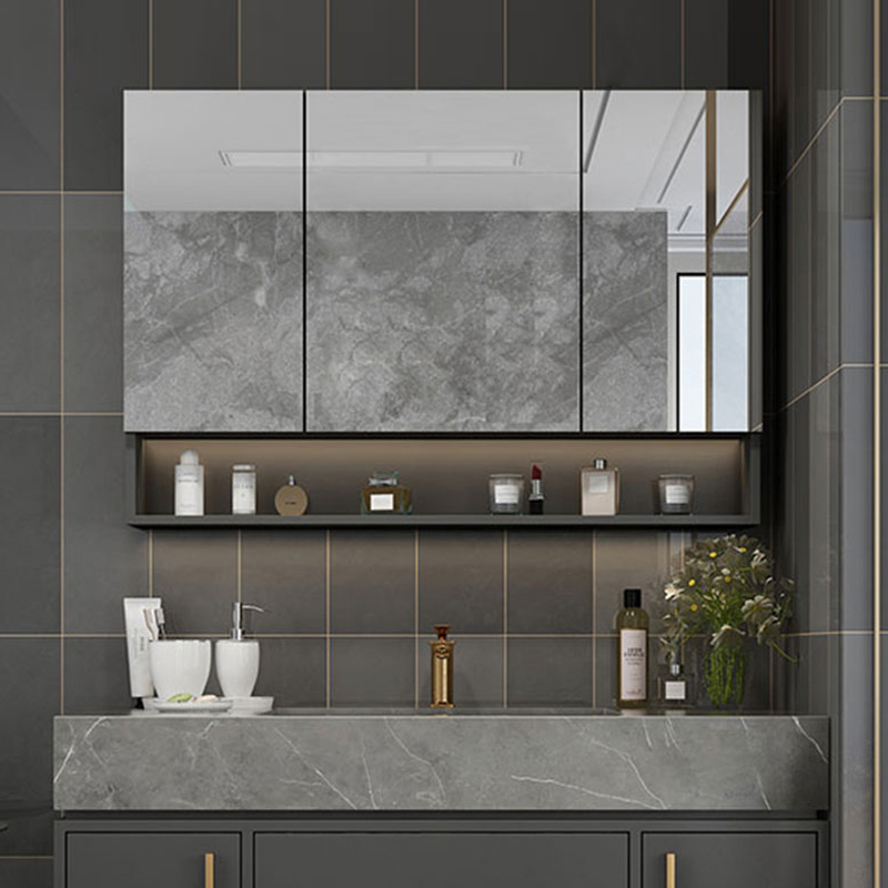The bathroom mirror fold and stack the hardware.