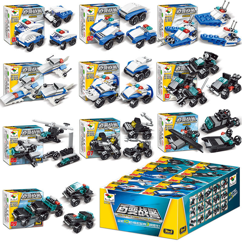 Children's building block car puzzle assembly robot fire truck police car set vibrato with the same cartoon model toy
