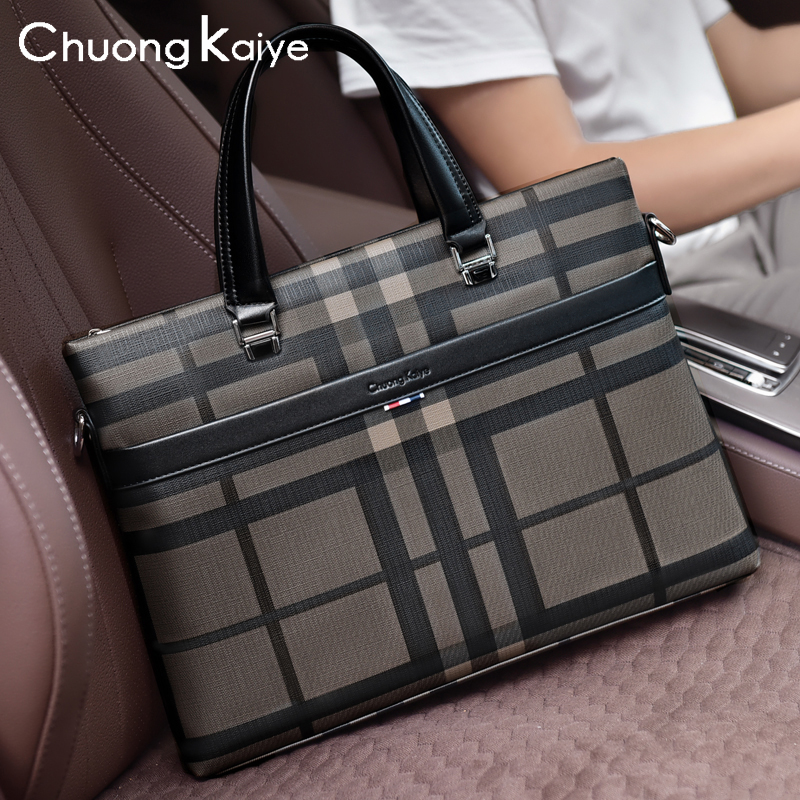 Chongkaiye men's bag briefcase business casual high-end handbag men's large-capacity leather horizontal trend