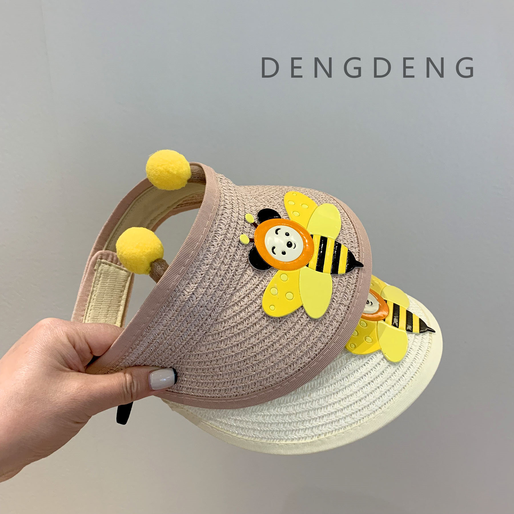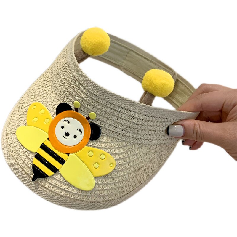 Beige bee straw hat pink bee straw hat white bee straw hat curry bee straw hat