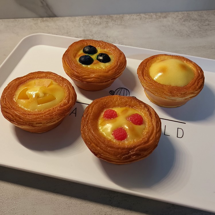 7 One 3cm mango egg tart without support 7 One 3cm blueberry egg tart without support 7 One 3cm raspberry egg tart without support 7 One 3cm plain egg tart without support
