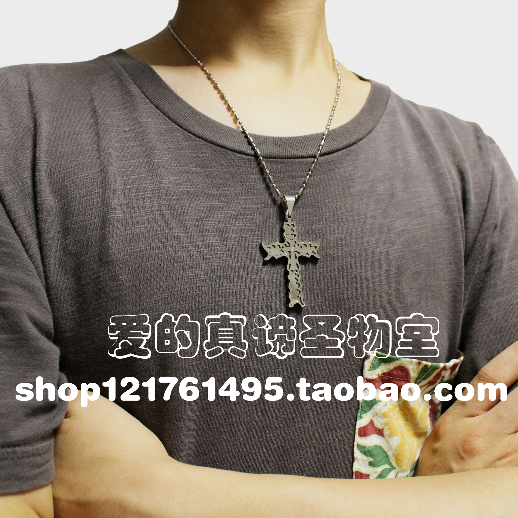 Large lace silver cross necklace men's titanium steel inlaid zircon spot
