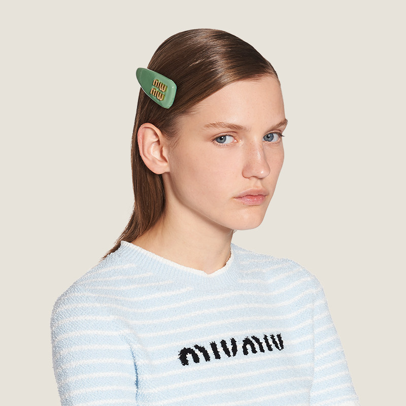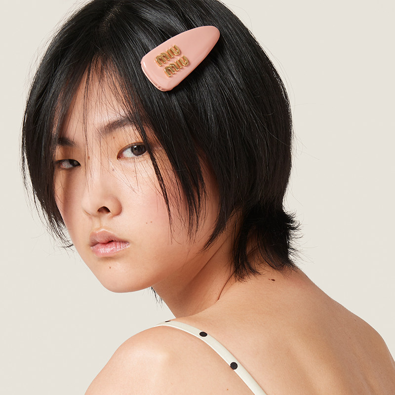 Miu Miu Miao Miao logo decorated with painted leather hairpin hairpin-Taobao
