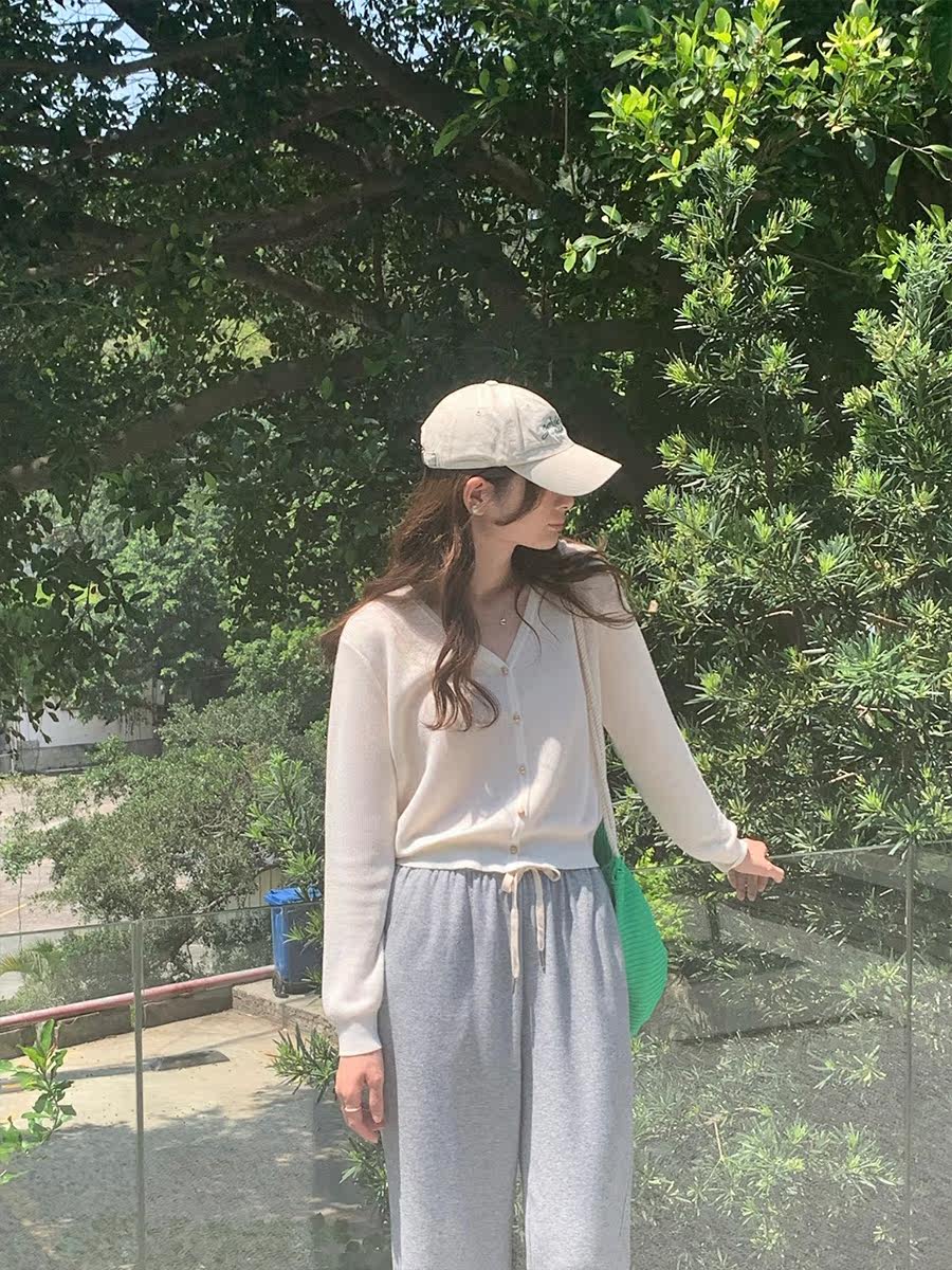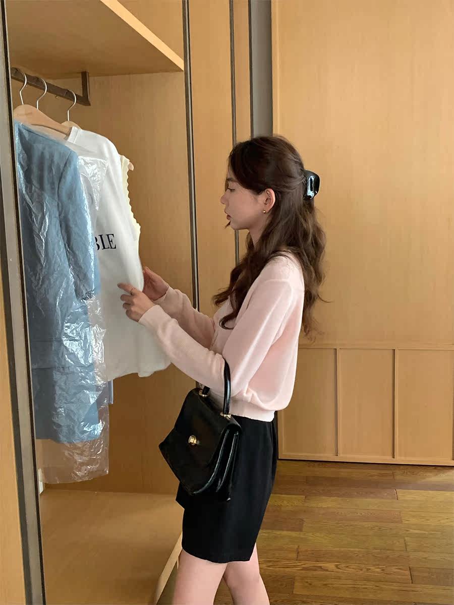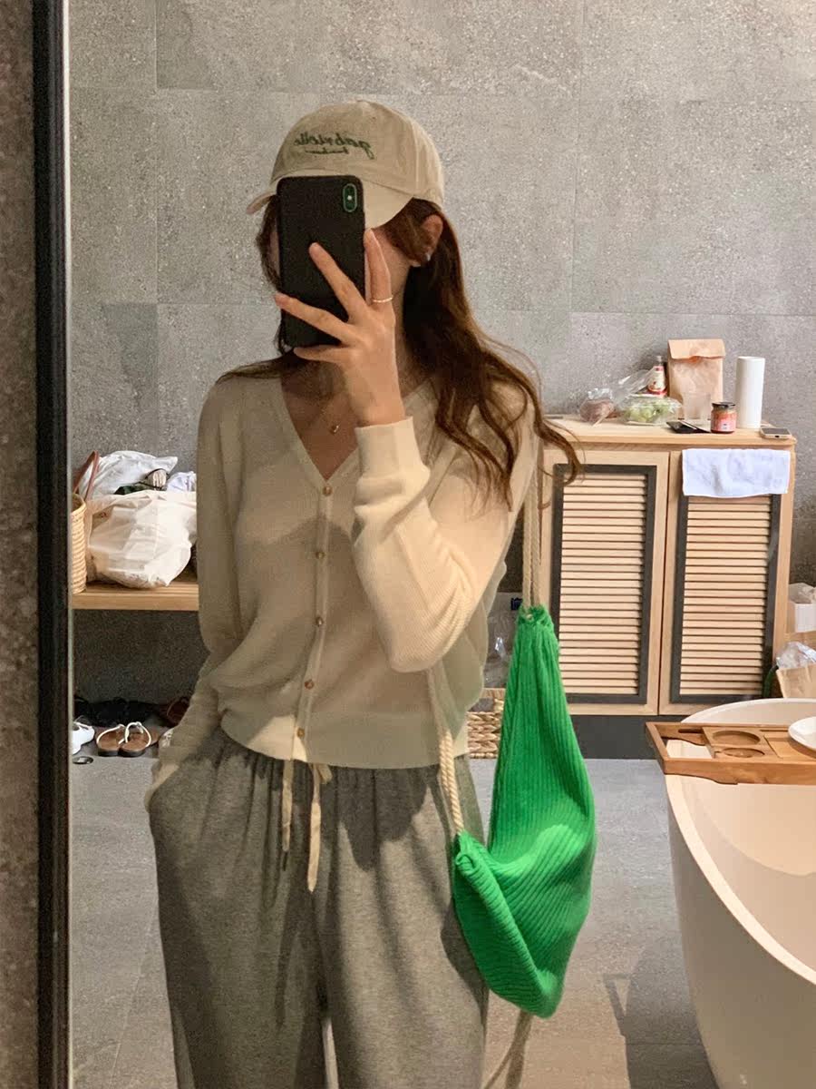 5siss Korean thin v-neck ice silk knitted sweater women's summer thin section air-conditioned shirt temperament commuting long-sleeved cardigan