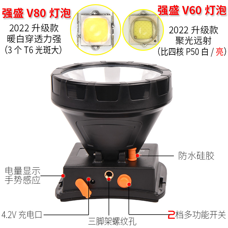 Imported German 9900W headlight strong light charging super bright LED sensor head-mounted lithium battery xenon 3000 meters fishing