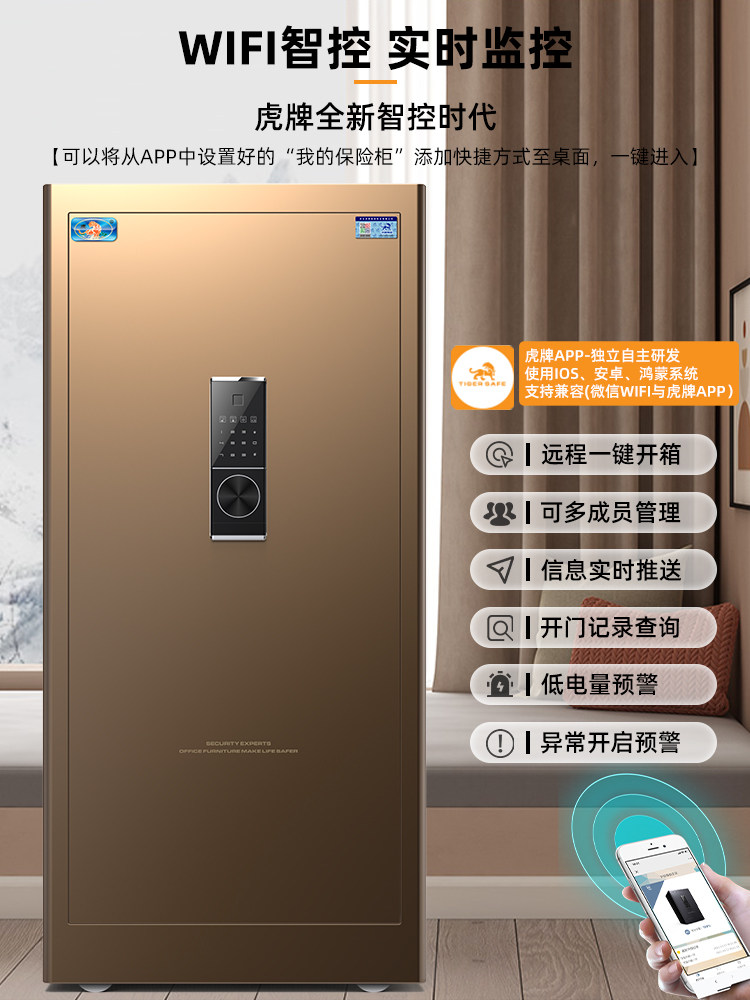 China Tiger safe home large 15m 12m 1m heavy-duty all-steel anti-theft office fingerprint password safe wifi remote into the wall clip million file cabinet commercial heavy-duty