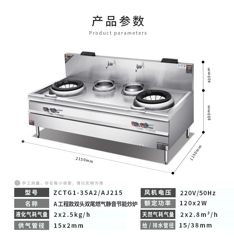 Engineering double-head and double-tail gas silent energy-saving frying furnace 2150*1150*800 400*100 Standard double-head and double-tail gas energy-saving frying furnace 2000*1000*