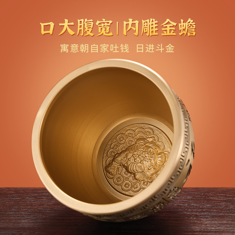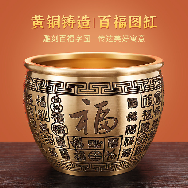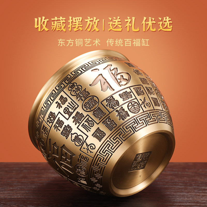 Pure Copper Recruit Treasure-in-cylinder Hundred Fu Cylinder Brass Rice Vat Poly Treasure Poly Treasure Basin Swing Piece Small Bronze Instrumental Bronze Basin Craftsmanship Gift Hem
