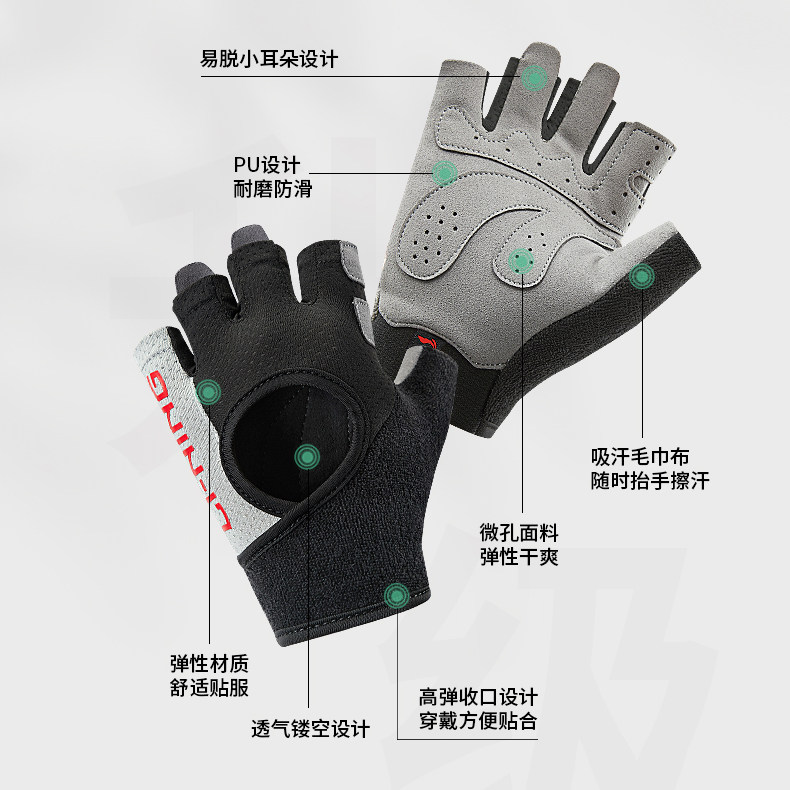 Li Ning sports gloves non-slip anti-cocoon men's professional fitness equipment training women's pull-up iron single exercise summer