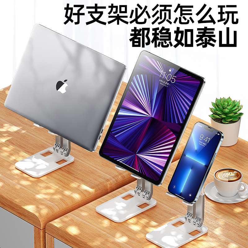 2022 new mobile phone bracket desktop lazy flat support frame folding adjustable lifting telescopic live ipad computer bracket pad aluminum alloy metal bed suitable for Huawei Apple