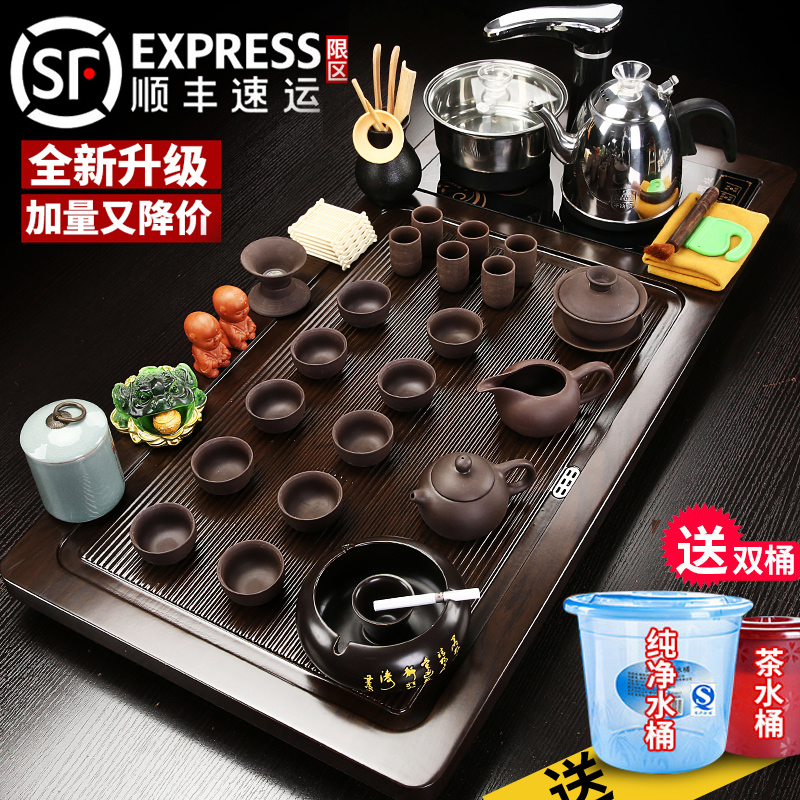 Könde Solid Wood Tea Pan Integrated Purple Sand Kongfu Tea Furniture Suit Home Living Room Tea Table Fully Automatic Induction Cooker Tea-Taobao