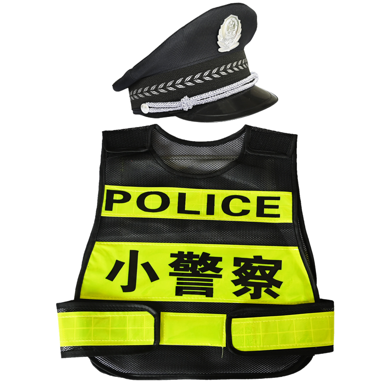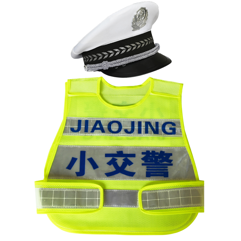 Small traffic police vest with gloves whistle Small police vest with gloves whistle Small fire vest with gloves whistle Male white hat vest with gloves Whistle Male black hat vest with gloves Mouth