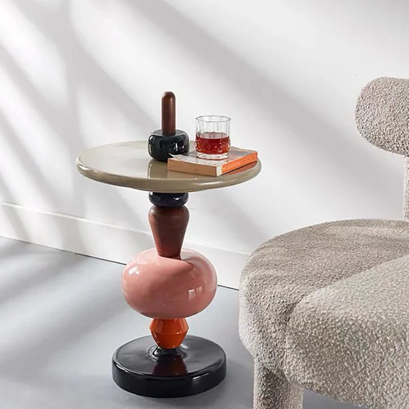 Nordic creative sofa side table Denmark light luxury solid wood paint sugar gourd coffee table simple art living room round table