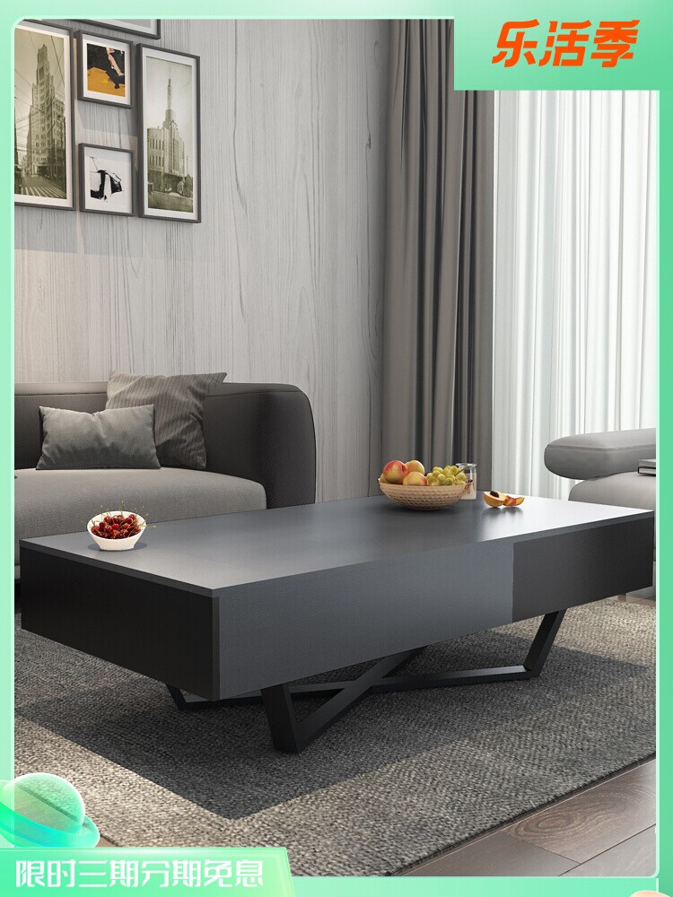 Nordic modern minimalist rectangular coffee table size apartment living room creative storage advanced black tea table with legs