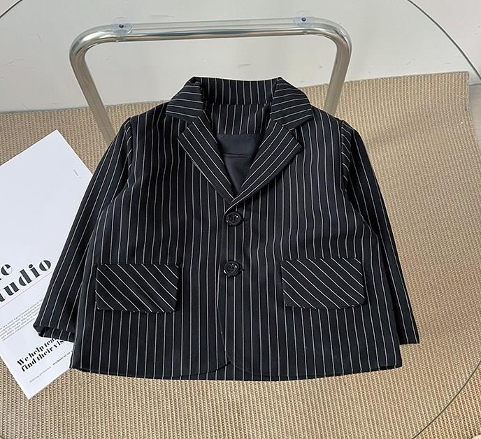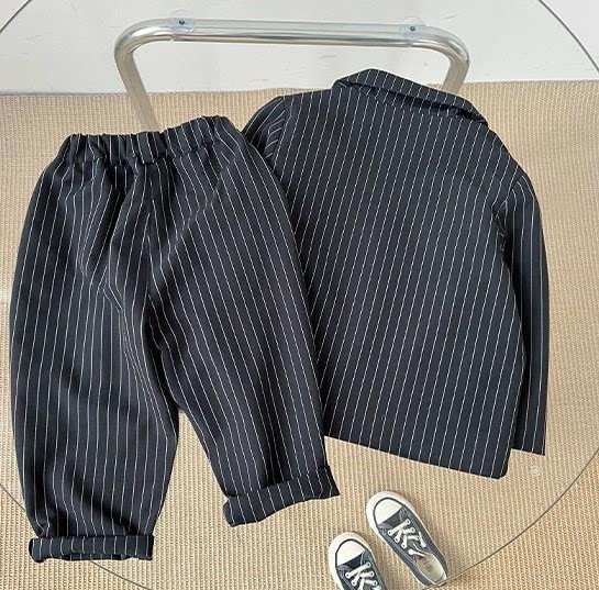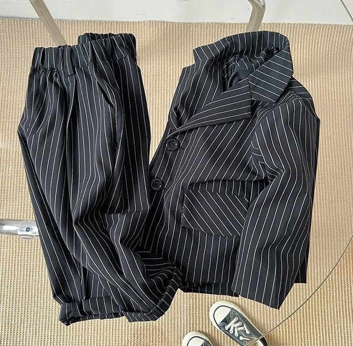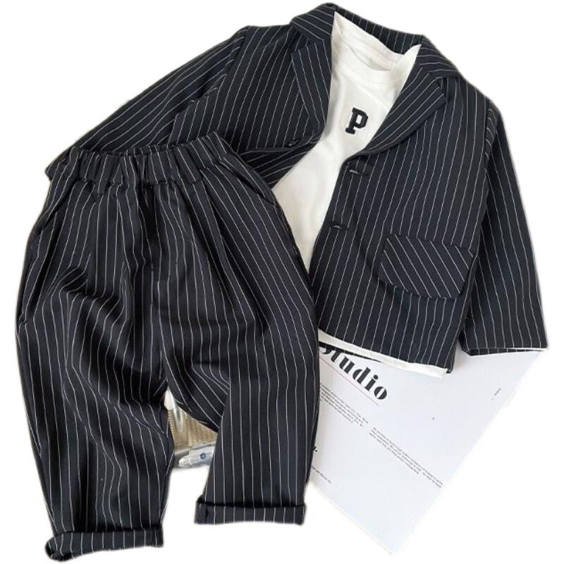2022 Spring Summer Children's Children's Han Edition Vertical striped Western suit Fall Boy Shuai Two sets of damp CUHK children