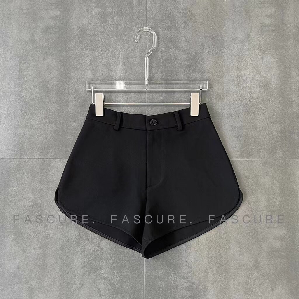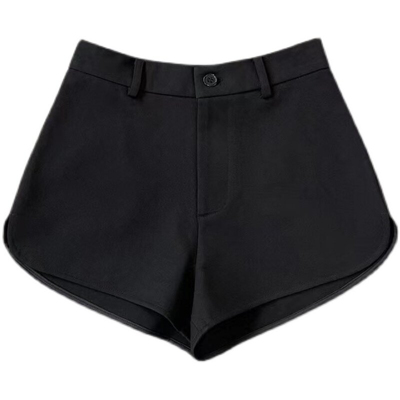 Ding Nini white suit shorts women's summer high waist slit arc slim all-match casual black wide-leg pants