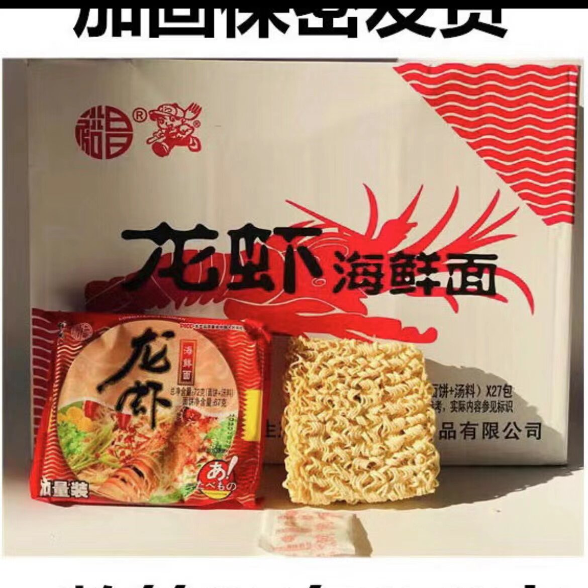 3 packets of spicy beef noodles 3 packets of braised pork ribs noodles 3 packets of spicy braised dragon 3 packets of lobster seafood noodles 5 packets of spicy braised lobster 5 packets of spicy beef noodles 5 packets of lobster noodles 5 packets of braised pork ribs noodles 5