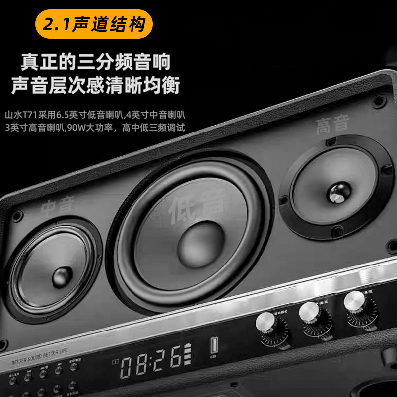Landscape T71 Sound Home K Song Triple Frequency Division Heavy Bass Outdoor Square Road Play Portable High Power Speaker Guitar