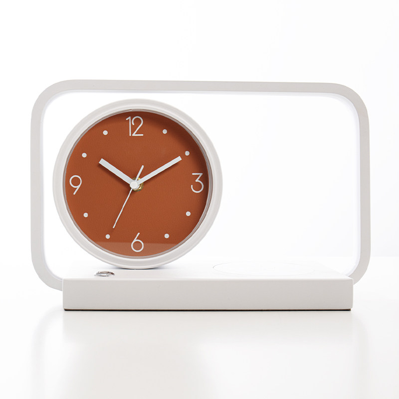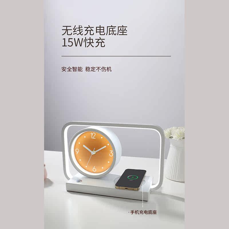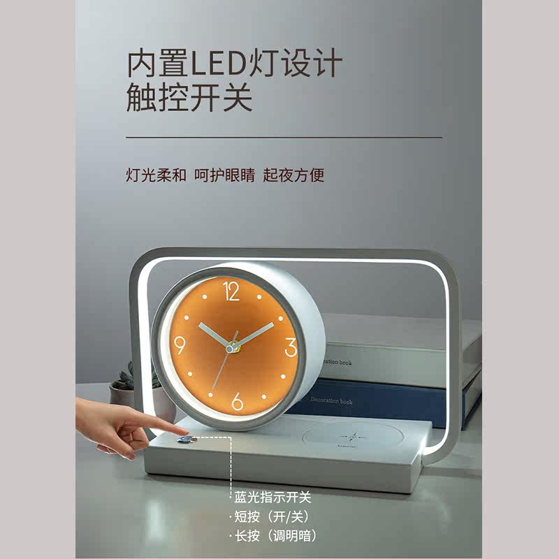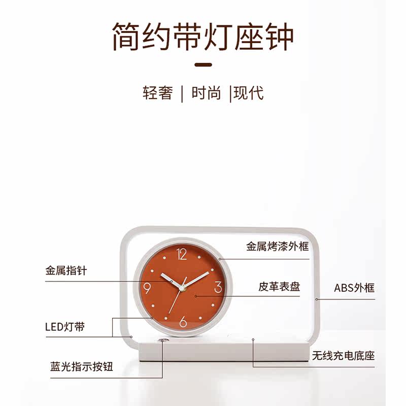 Han Fashion Modern Light Lavish Wireless Charging Nightlight Decoration Seat Clock Living Room Fashion Muted Metal Quartz Clock HD88