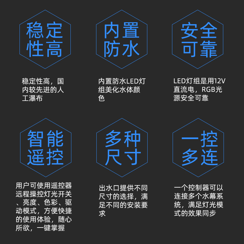 Color Falls with Lights Fluid Water Curtain Wall Landscape Pool