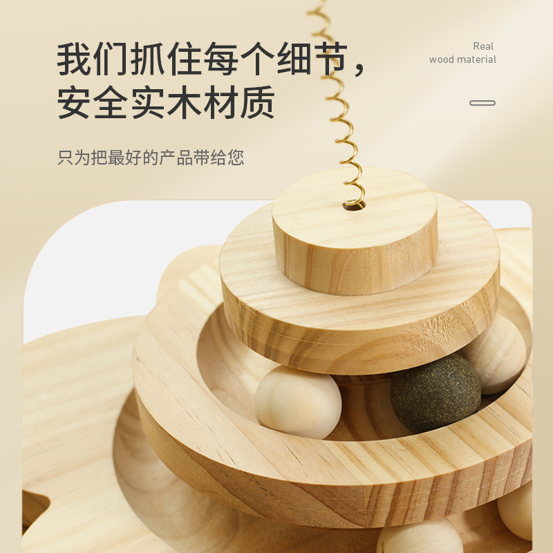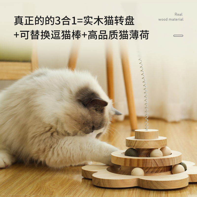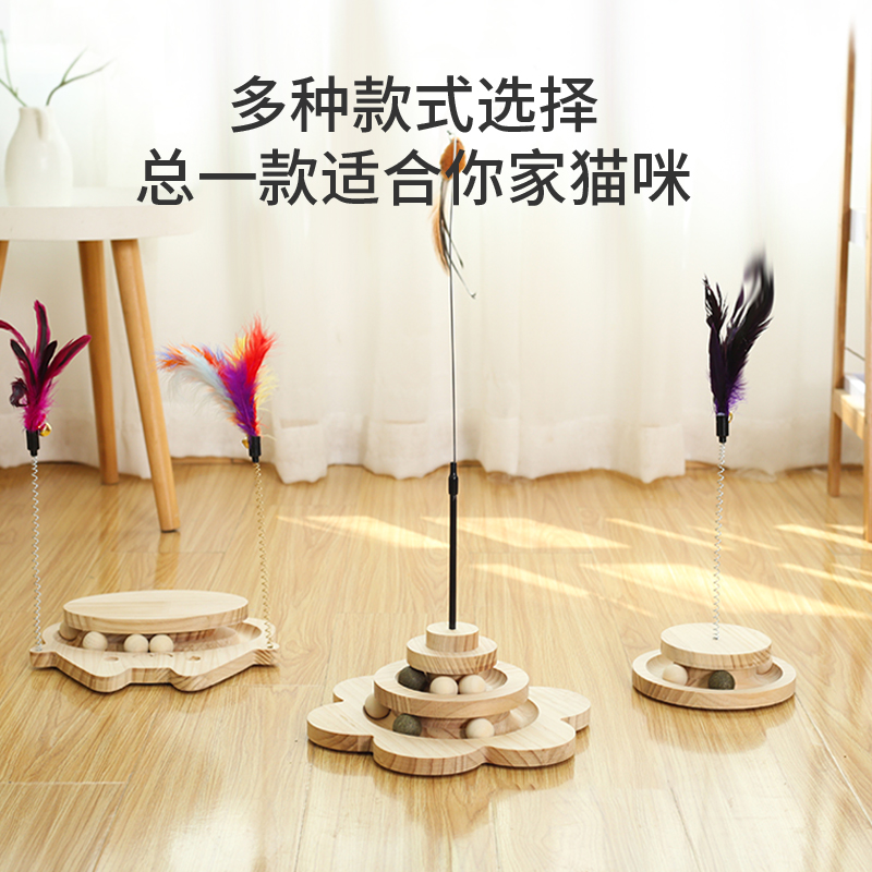 Cat Toy Solid Wood Cat Turntable Cat Mint Balls Self-Hi-Stifling Automatic Feather Teasing Cat Sticks Resistant to Young Cat Supplies