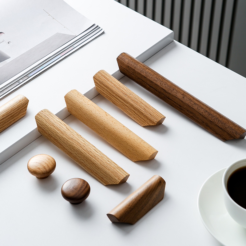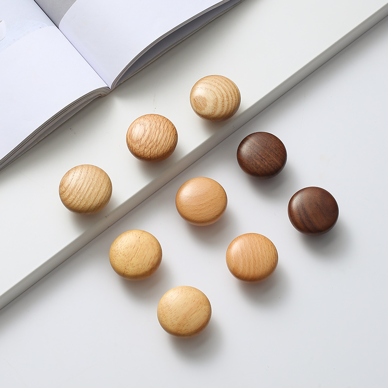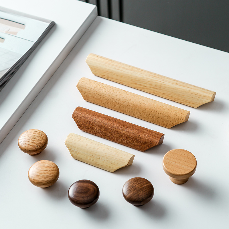 Simple cabinet door solid wood handle drawer whole cabinet Japanese style single hole round log handle wardrobe shoe cabinet wooden handle