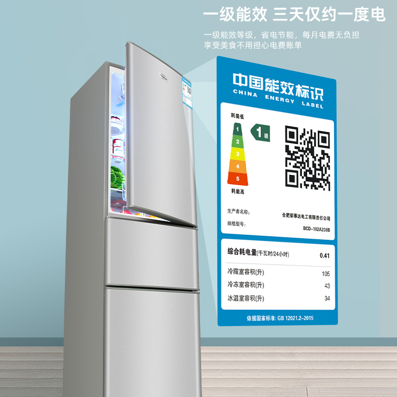 Three-door silver 238 first-class energy efficiency shelf model Three-door silver 238 first-class energy efficiency drawer model