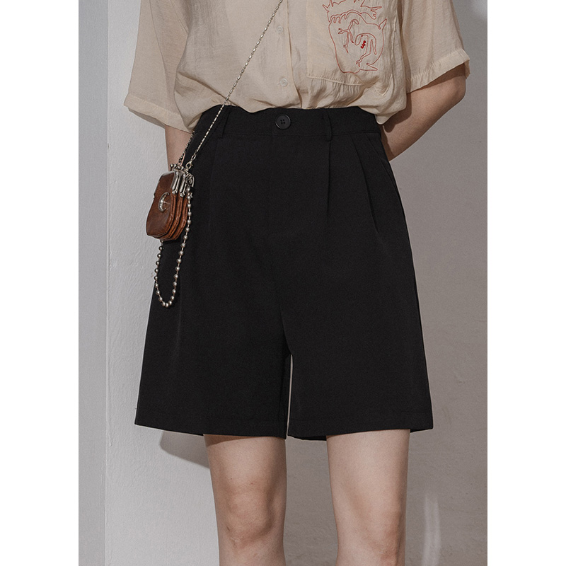 Suit 50% pants woman black high waist display slim asymmetrical loose wide leg casual shorts Jane about 100 lap 50% pants