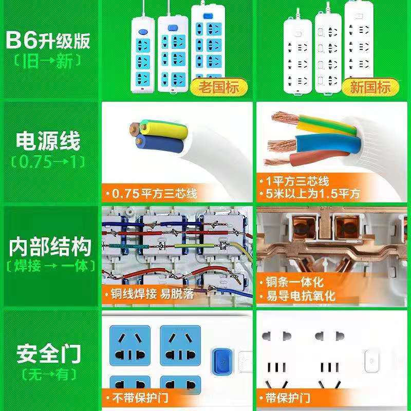 Bull socket multi-functional household plug-in row student dormitory plug-in board ultra-long line wiring board 10m20m electric plug-in board