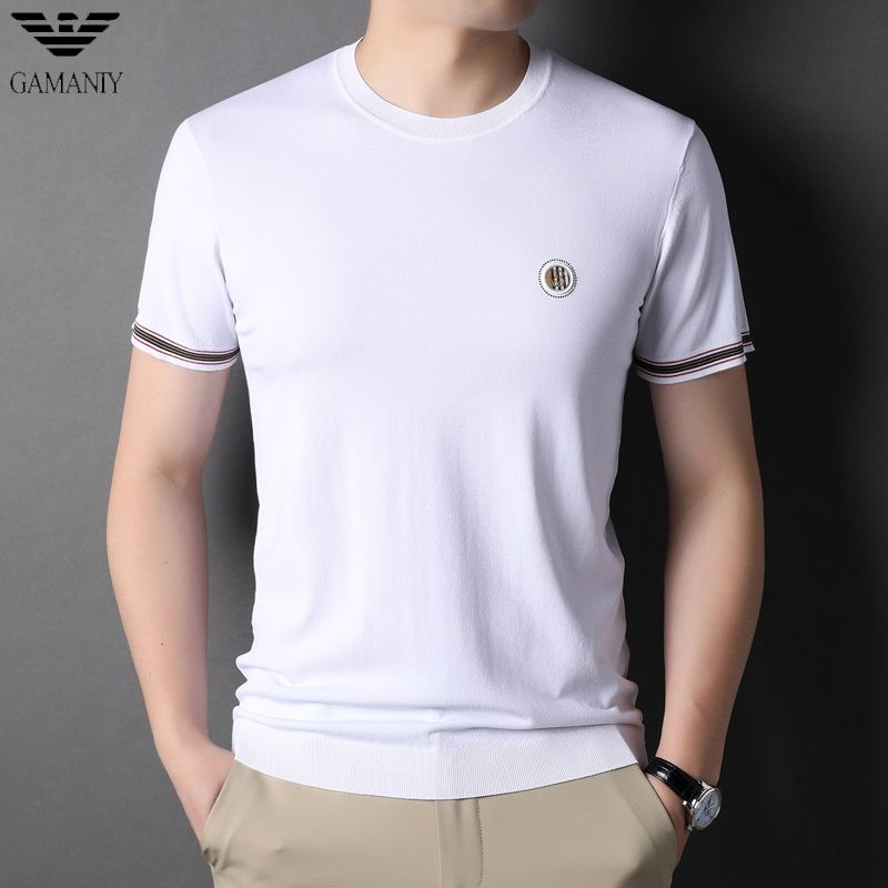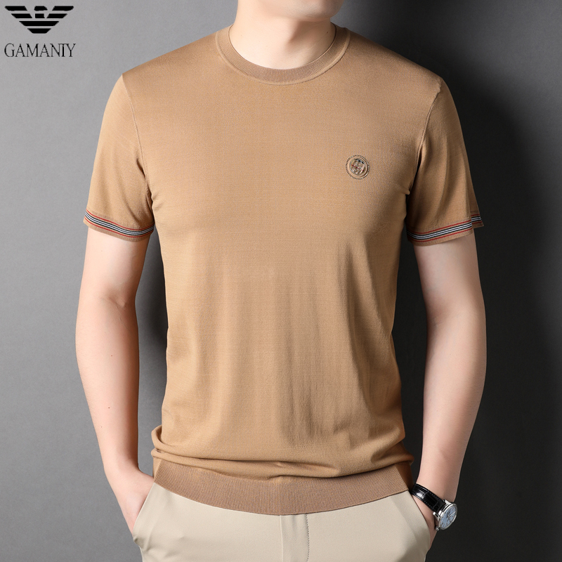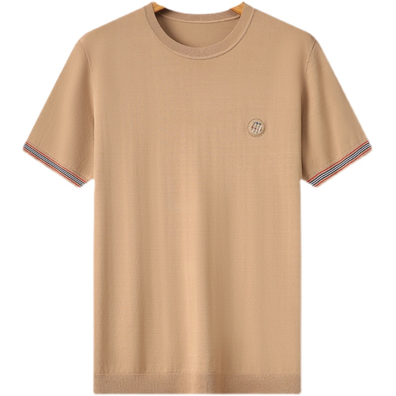 Summer dress Qi Amania short-sleeved T-shirt men's ice silk round neck breathable cool feeling casual high-end silk bottoming shirt tide t