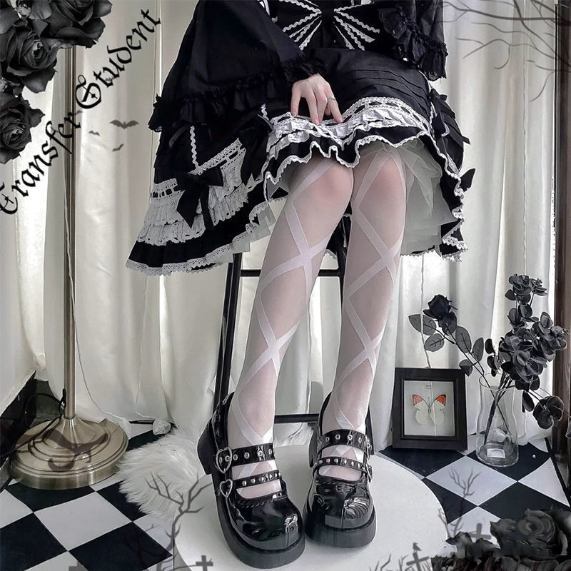 Japanese Lolita Sweet Soft Sister Lolita Cross-printed pants White Silk Socks Children Summer Spring and Autumn Thin Model