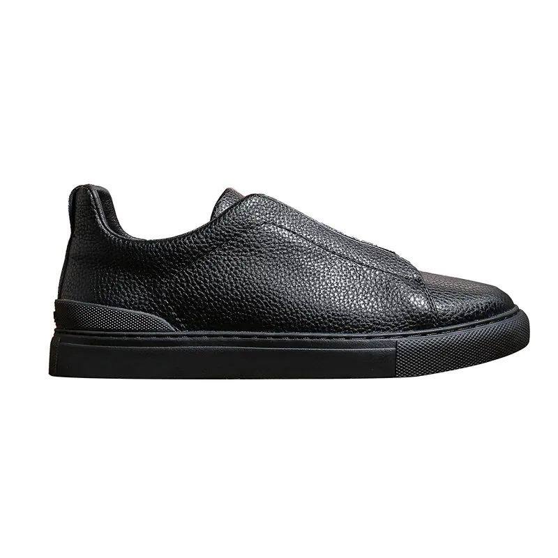 King fried XXX logo lychee pattern calfskin without laces men's one-foot pedal casual shoes leather breathable low-top shoes
